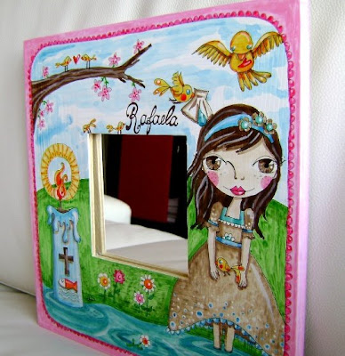 Acrílico sobre madeira e espelho no centro. Tem a ...